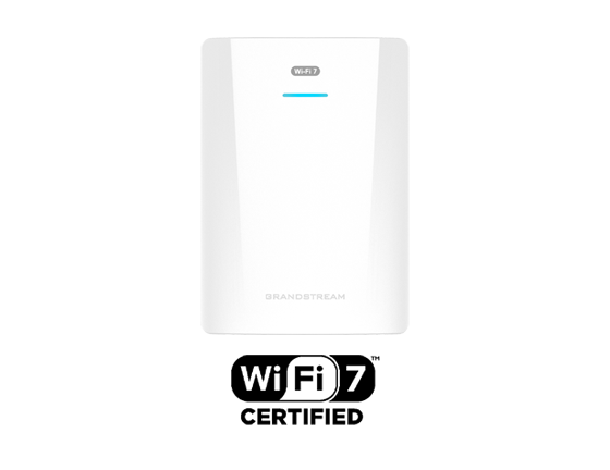 The GWN7670WM is a powerful enterprise-grade wall-mounted dual-band Wi-Fi 7 access point that provides speeds up to 3.6Gbps, ideal for environments with medium user density. It has a stylish appearance and a sprayable shell, which easily matches various decoration styles and perfectly integrates into the space. It offers dual-band 2x2:2 MIMO with DL/UL OFDMA technology and a sophisticated antenna design for maximum network throughput and expanded Wi-Fi coverage range. The GWN7670WM improves bandwidth utilization and anti-interference ability with Multi-RU and Preamble Puncturing technology. With 4096 QAM modulation, Wi-Fi 7 achieves a significant increase in data transfer rates. MLO technology optimizes spectrum resource utilization to ensure a smooth experience for every user. To ensure easy installation and management, the GWN7670WM uses a controller-less distributed network management design in which the controller is embedded within the product’s Web user interface. The GWN7670WM is also supported by GDMS Networking and GWN Manager, Grandstream’s cloud and on-premise Wi-Fi management platform. It is the ideal Wi-Fi AP for voice-over-Wi-Fi deployments and offers a seamless connection with Grandstream’s Wi-Fi capable IP phones. With support for advanced QoS, low-latency real- time applications, mesh networks, captive portals, BT location with Bluetooth Low Energy 5.3, 256 concurrent clients per AP and 1 x 2.5 Gigabit network ports with PoE+, GWN7670WM is an ideal Wi-Fi access point for wireless network deployments with medium-to-high user density.
